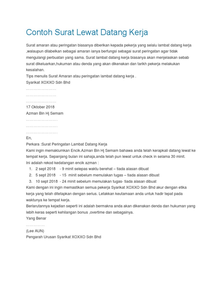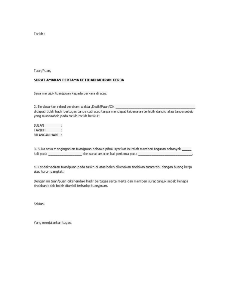 Contoh Surat Amaran Untuk Pekerja Pdf